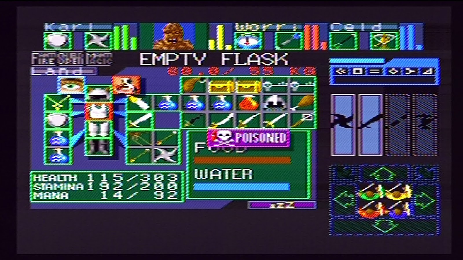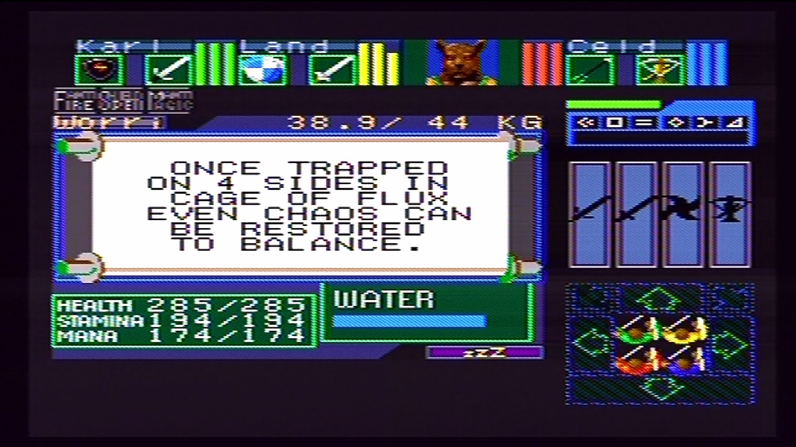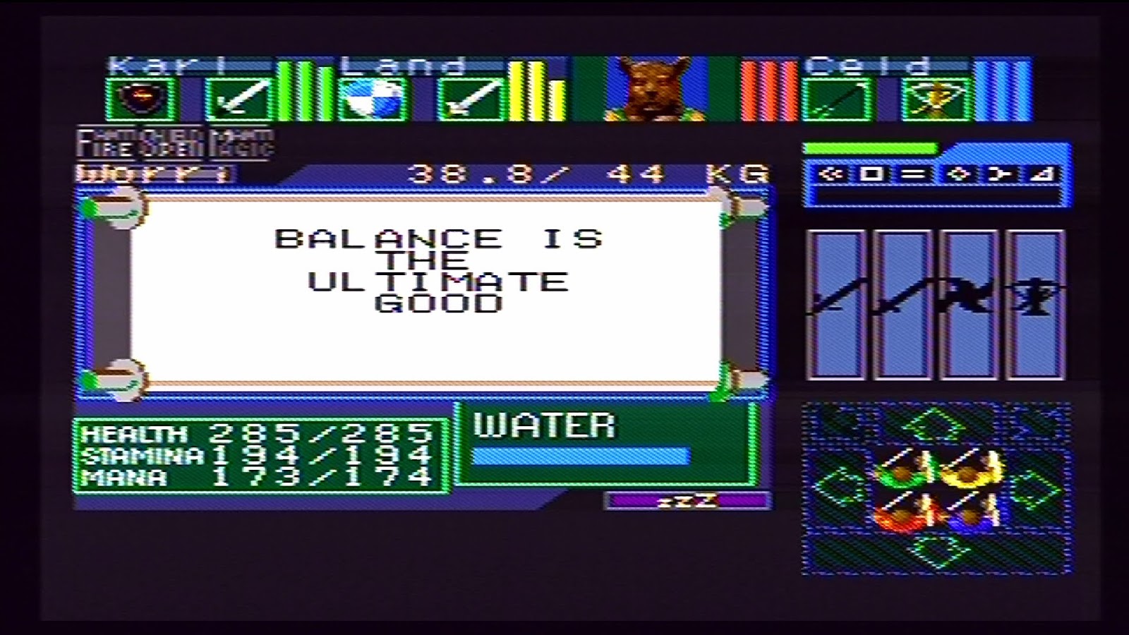 Collector - There are a good number of items, mainly equipment, but there's too much to fit in all the inventory slots of four characters. Without a vault I was forced to sell some of it off, though it didn't have much use beyond equipping, even the magic items. The economy does well to maintain its usefulness through to the penultimate dungeon where better equipment is found in the dungeon than is purchasable. The strength of each item is readily available, although there are hints of magical effects that remain a bit of a mystery. With no indication of a complete list , the treasure seeker will have to be ever vigilant for secret passages.