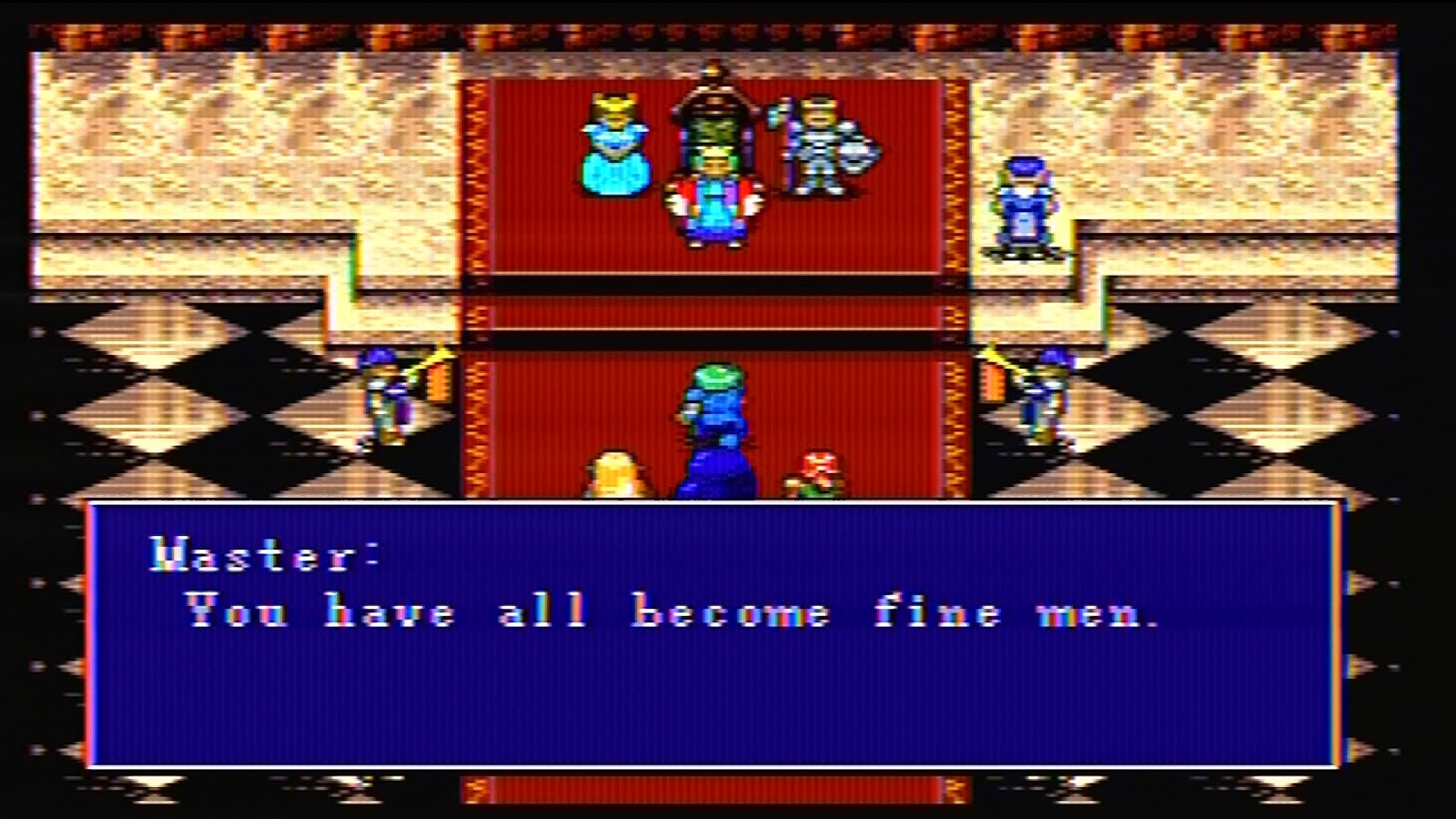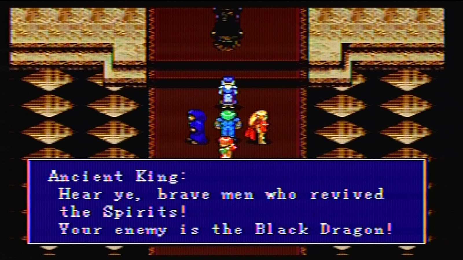 Finally Astina had a group heal spell, and it's a good thing too as the dragon has a lightning attack that severely damages the under leveled majority of the party. They lasted just long enough to maintain their health as they buffed Norick, and burned through their MP. Elrad dropped first after unleashing his ultimate spell, Explosion. Once the dragon fell, the spirit of the sword withdrew, and thanked the party after restoring the fallen members to life. We returned to Landale to find Kanan was now king.