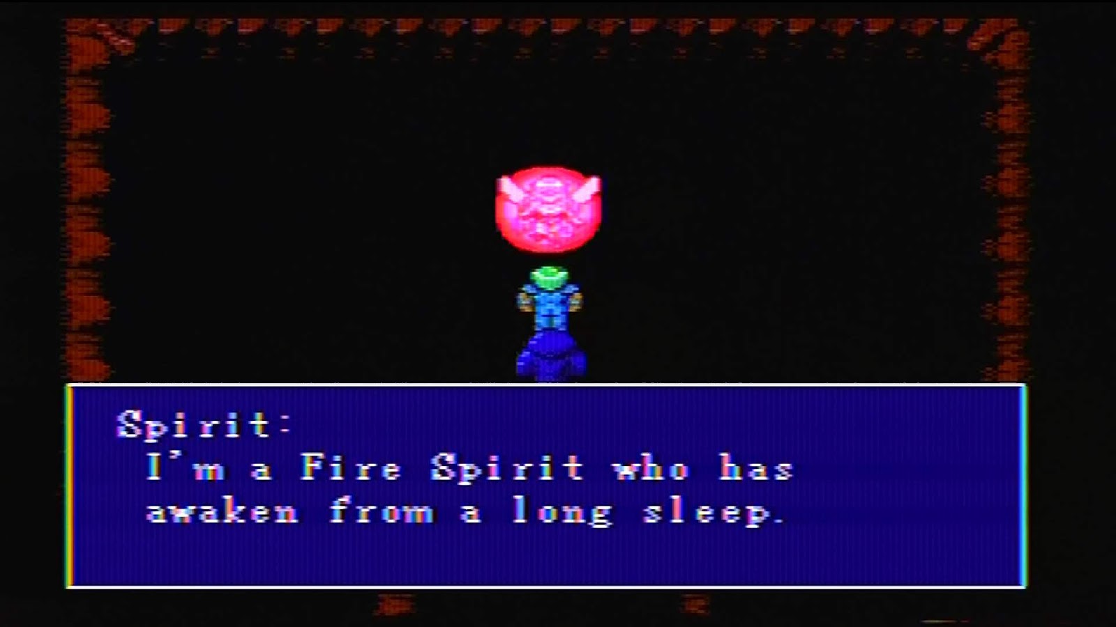 Another area cleared, and another new title. Title changes aren't just for show. Each one grants new spells (to all except the hero, who can't cast magic). While most new spells cost more, the extra punch they provide is usually worth it. At the end of the previous dungeon, I learned that I had to release all the spirits to gain a special power to defeat the great evil plaguing the land.